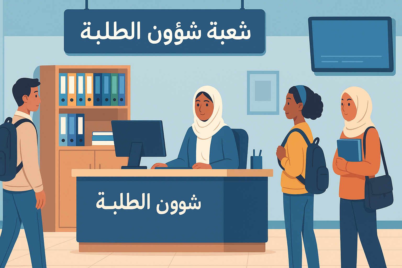 - استقبال الطلبة والإجابة على استفساراتهم المتعلقة بقضاياهم الإدارية