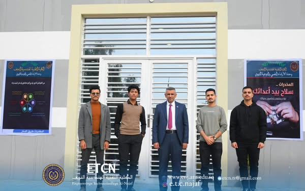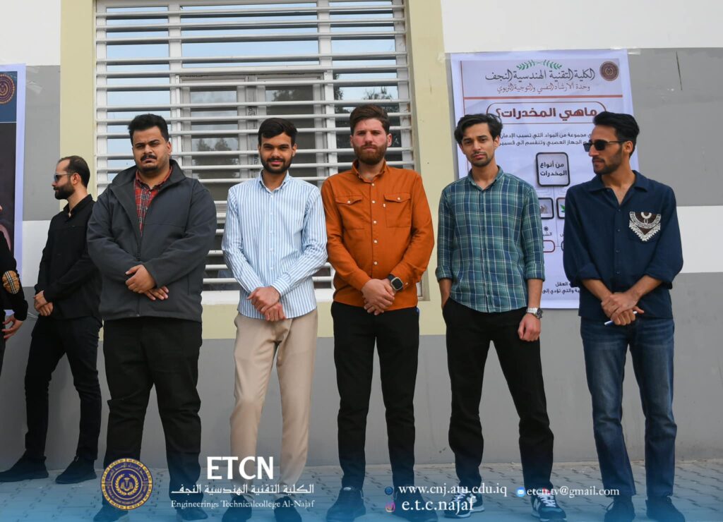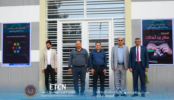 تنفيذا لتوجيهات وزارة التعليم العالي والبحث العلمي ورئاسة جامعة الفرات الأوسط التقنية، وبحضور السيد عميد الكلية التقنية الهندسية النجف الأستاذ الدكتور حسنين غني الحسيني وضمن الخطط وحدة الإرشاد النفسي والتوجيه التربوي في الكلية نظمت وحدة الوحدة وقفة لمكافحة المخدرات.