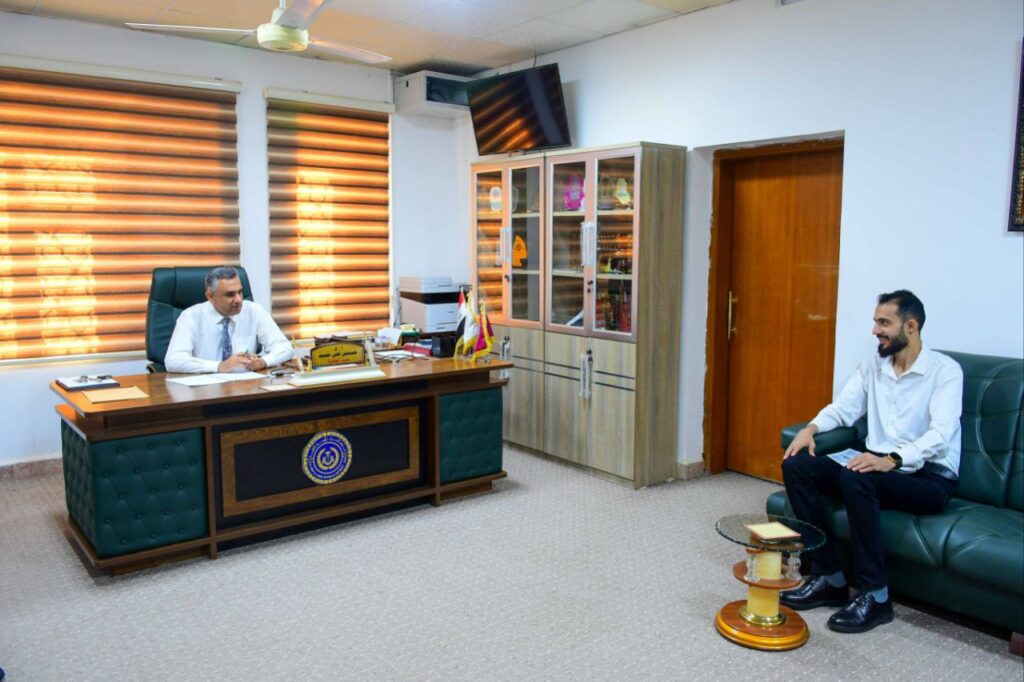 وخلال اللقاء، رحّب السيد العميد بالطالب، ووجّه بتقديم التسهيلات وتوفير الدعم الأكاديمي والإداري الذي يضمن له بيئة دراسية متميزة، مؤكداً أن الكلية تفتح أبوابها أمام جميع الطلبة الراغبين في نيل التعليم التقني الرصين ضمن تخصصات حديثة تواكب التطورات العالمية.