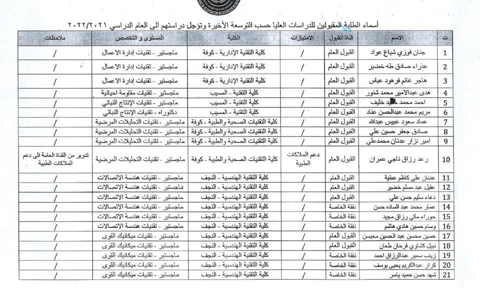 اسماءالطلبةالمقبولين في الدراسات العليا بعدالتوسعةالثالثة