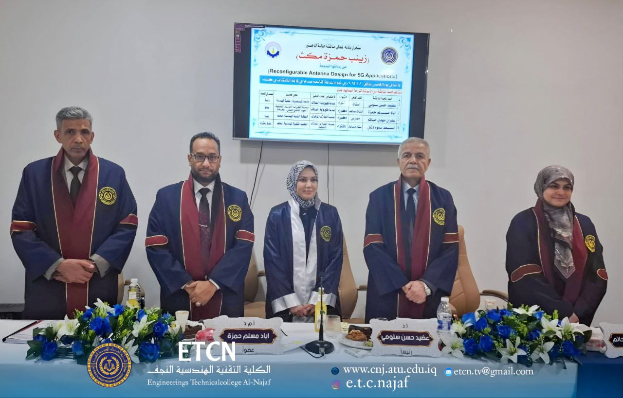 جامعة الفرات الاوسط التقنية تناقش رسالة ماجستير حول تصميم هوائي قابل لأعادة التشكيل لتطبيقات الجيل الخامس .