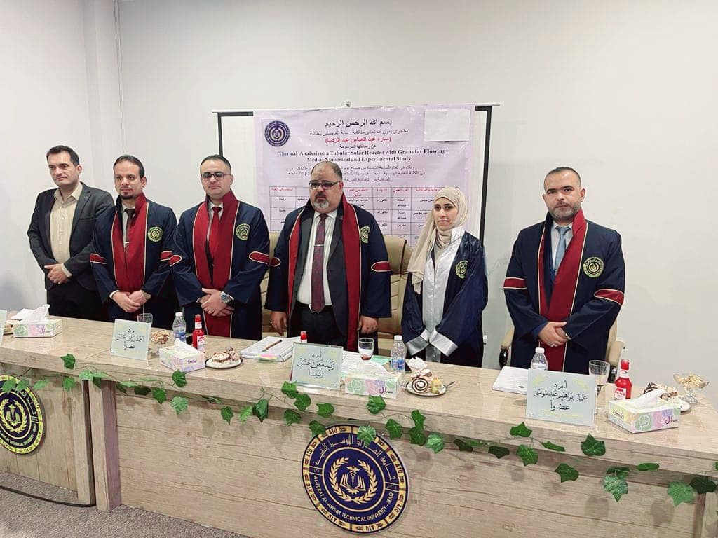 رسالة ماجستير في الكلية التقنية الهندسية النجف تناقش التحليل الحراري لمفاعل شمسي