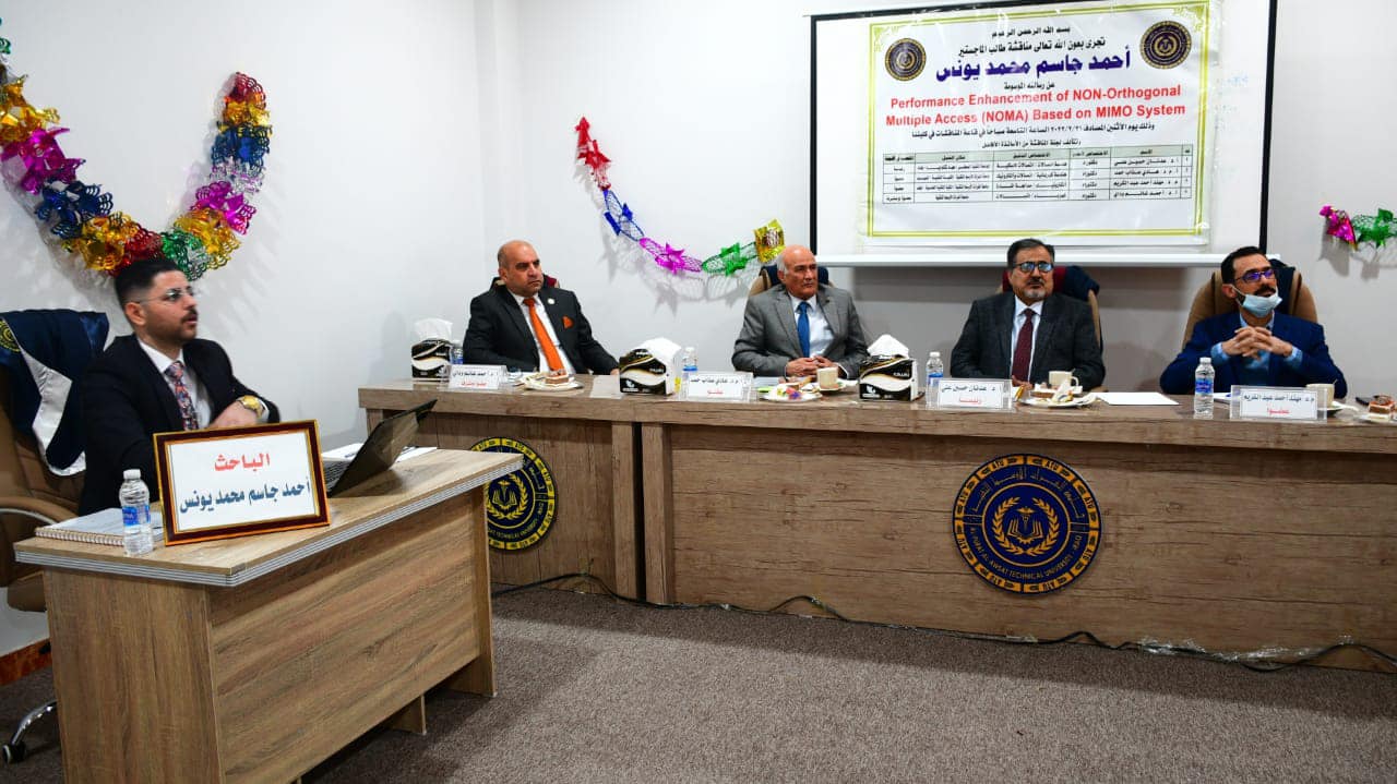 رسالة ماجستير في جامعة الفرات الأوسط تناقش تحسين أداء الوصول المتعدد غير المتعامد ( NOMA ) على أساس نظام متعددة المدخلات والمخرجات المتعددة (MIMO)