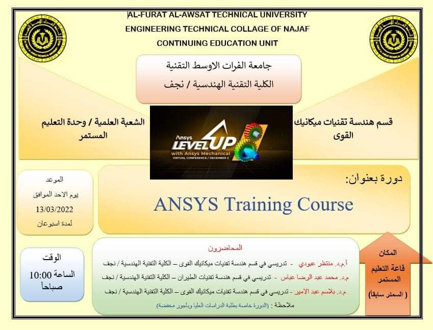 الكلية التقنية الهندسية النجف تقيم دورة في برنامج ANSYS مخصصة لطلبة الدراسات العليا