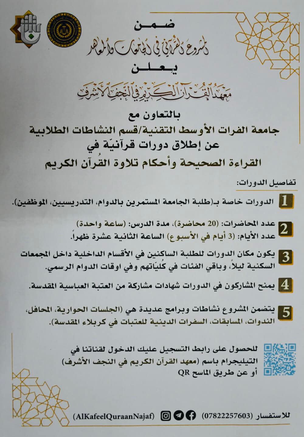 دورات قرانية قي القراءة الصحيحة واحكام تلاوة القران الكريم