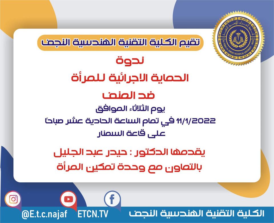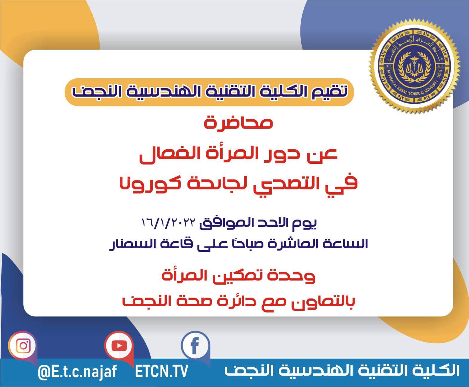 الكليةالتقنية الهندسية نجف تقيم محاضرة عن دور المرأة في ظل جائحة كورونا “كوفيد-19”