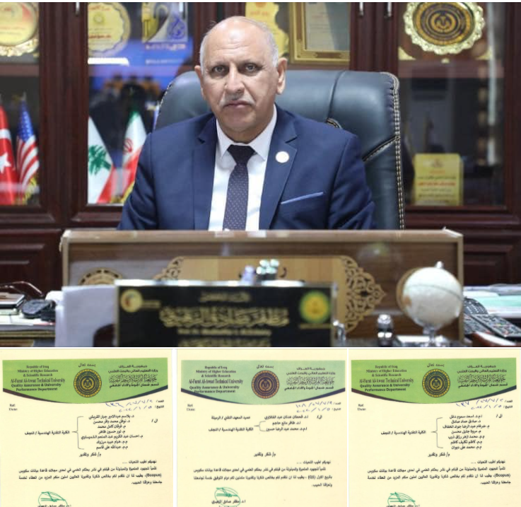 رئيس جامعة الفرات الأوسط التقنية يوجه كتب شكر وتقدير للباحثين
