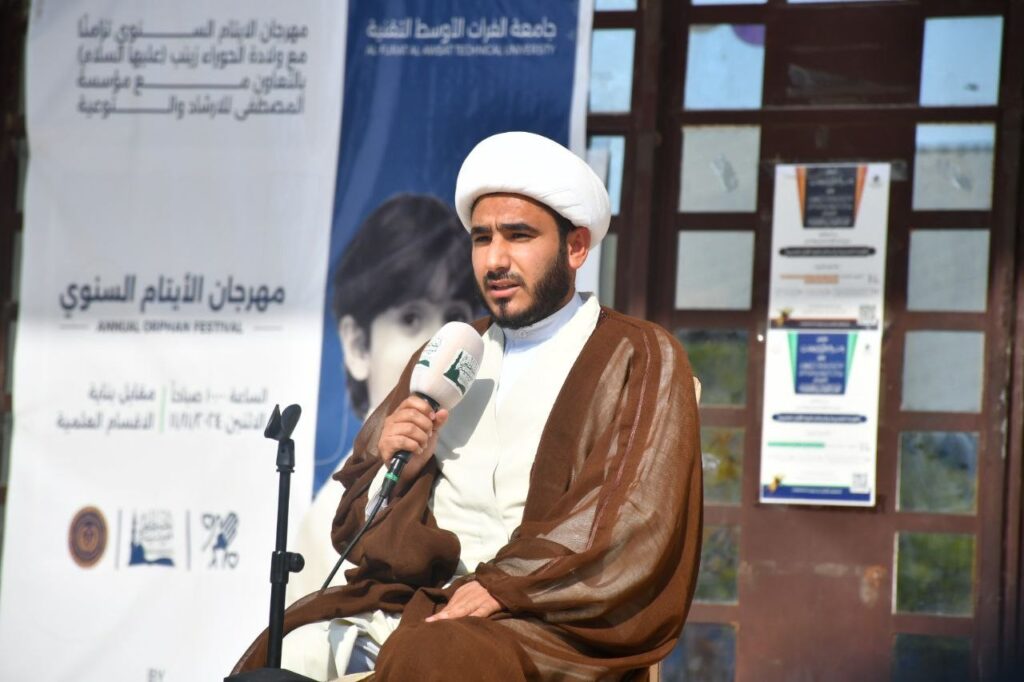 Prof. Al-Zubaidi opened the festival by welcoming all guests and emphasizing the virtue of caring for orphans and bringing joy to their hearts, a tribute to the sacrifices made by their fathers to protect the nation and its sacred values. He also praised the timing of the event, coinciding with the birth anniversary of Lady Zainab bint Ali ibn Abi Talib (PBUH).
