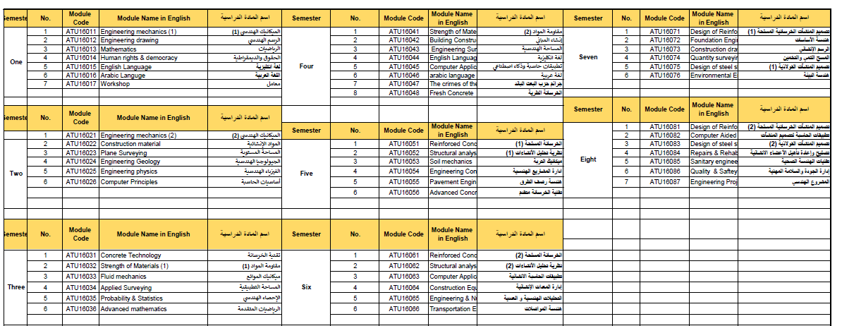 View StaffThe study plan and its distribution across the four academic years in the specialization of Building and Construction Engineering Technologies.