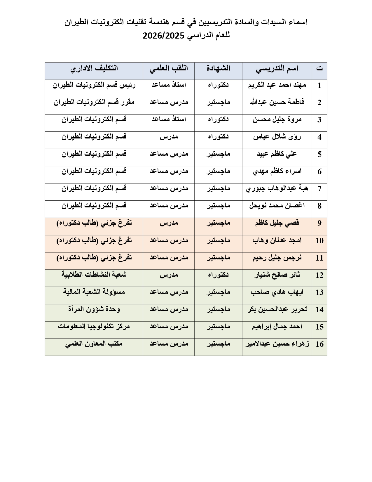 To be a leading department in teaching and developing aviation electronics technologies, contributing to innovation and scientific research to meet the needs of the local, regional, and international aviation and electronics job markets.