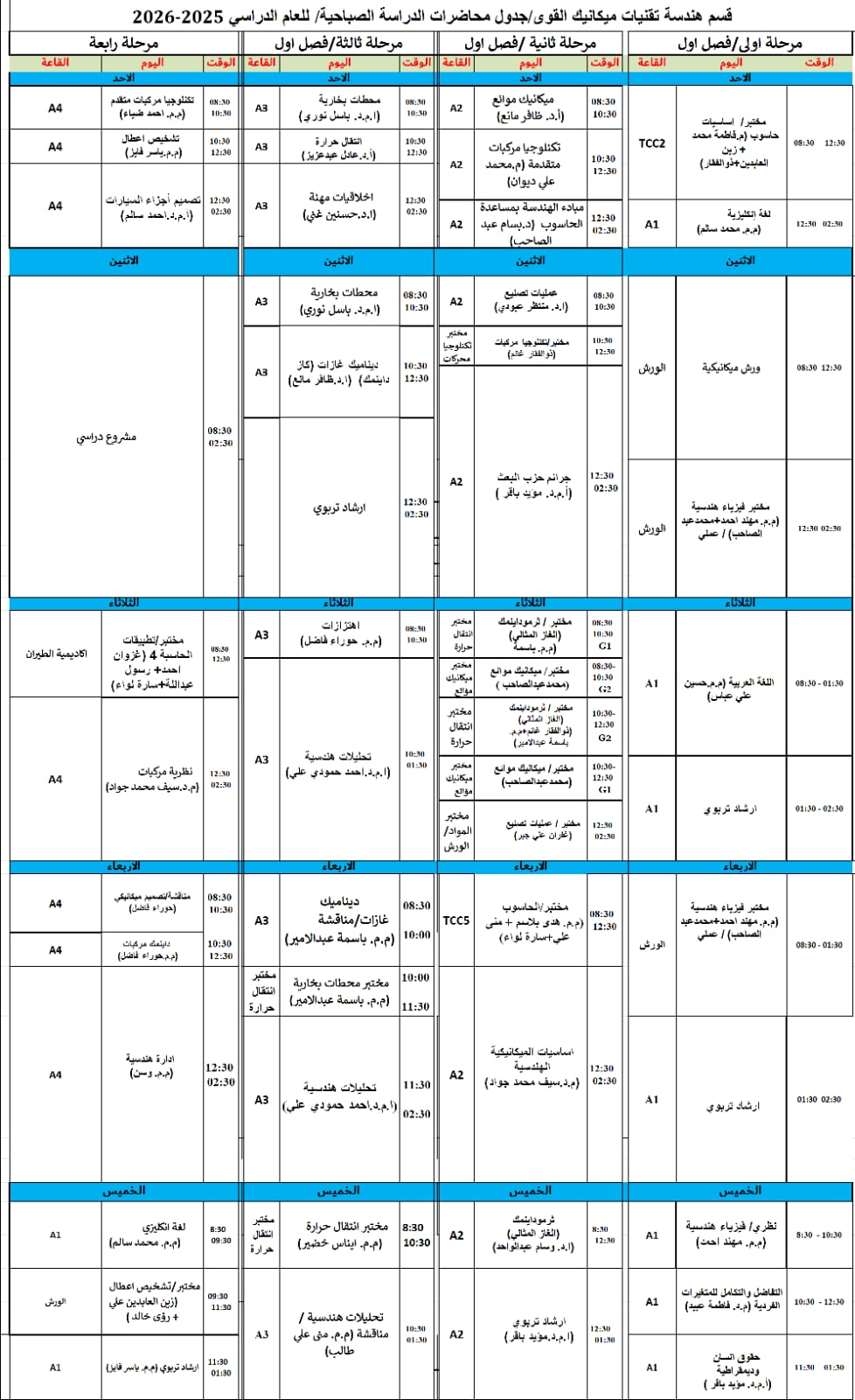 Read moreTimings of theoretical and practical lectures throughout the academic week for all stages in the Department of Power Mechanics Engineering Technologies.